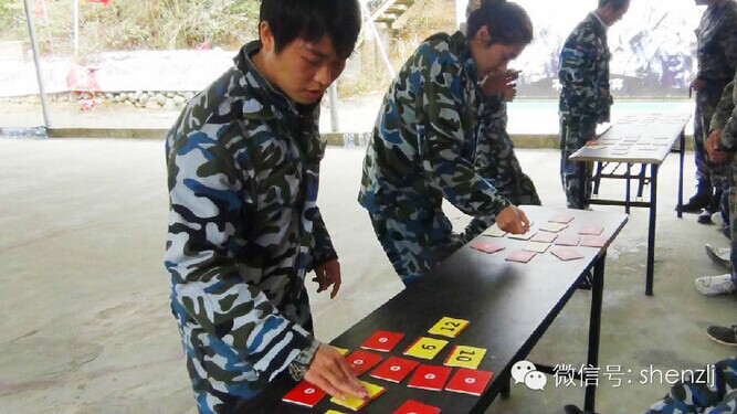 这是一个关于领导力和执行力的项目:首先队长和秘书要先学会用一副七巧板在6秒内拼成一个“T”字,然后在十分钟时间内要教会队友完成6秒拼“T”字,最后4个队一起比拼。