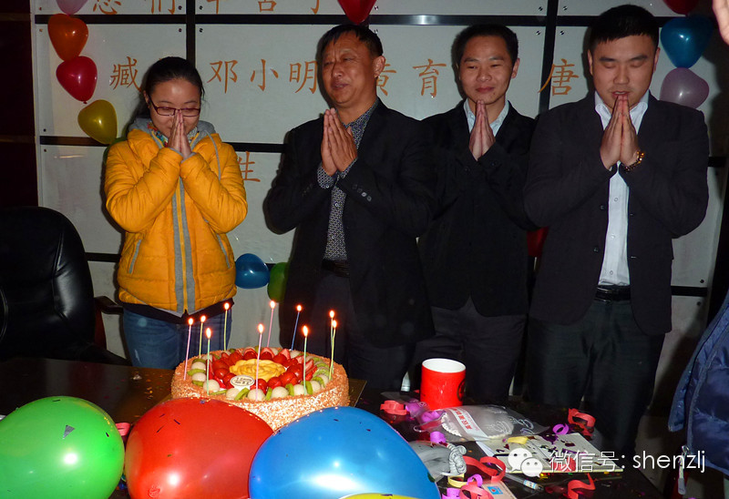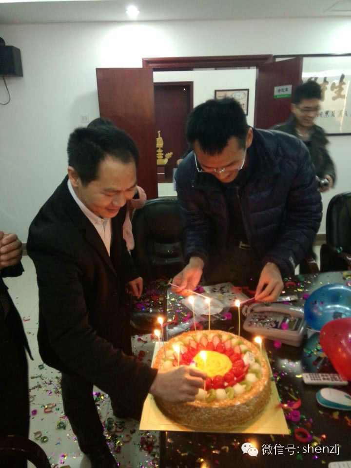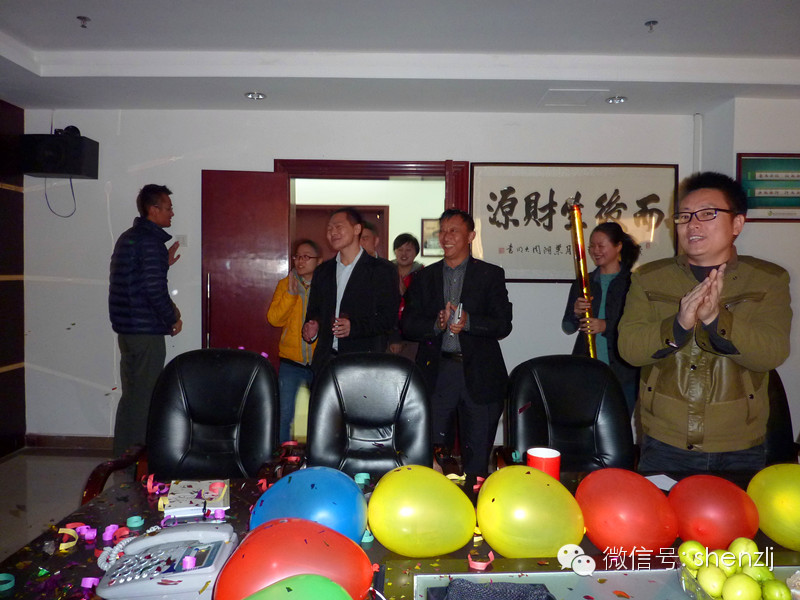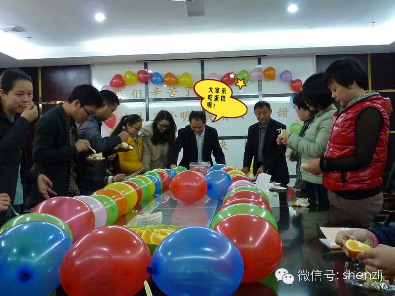 又到了我们一月一次的生日会了,本月寿星有:总经理臧延怀、经营部邓小明、工程部唐甜、黄育兴。为了送给他们一个惊喜,在戴导的带领下,其他伙伴主动下班留下布置会场,噔噔噔,一个漂亮而又温馨的会场形成了。