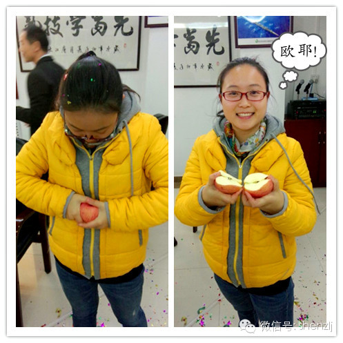最后我们女寿星为了表示感谢,给大家表演了一个她的绝活:手掰苹果!大家鼓掌!