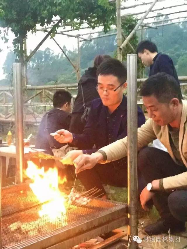 香味渐渐弥漫在空气中,有些小伙伴们已经迫不及待的在旁等待着我们的男同胞烤出的美食......小伙伴们一边吃着美食,一边玩着游戏,笑声一浪接一浪,玩的不亦乐乎!
